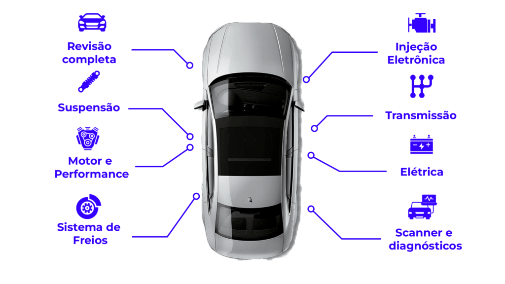 Cada serviço é executado com diagnóstico preciso, transparência e uso de peças de qualidade garantida — entregando segurança, confiança e resultado superior para seu veículo.